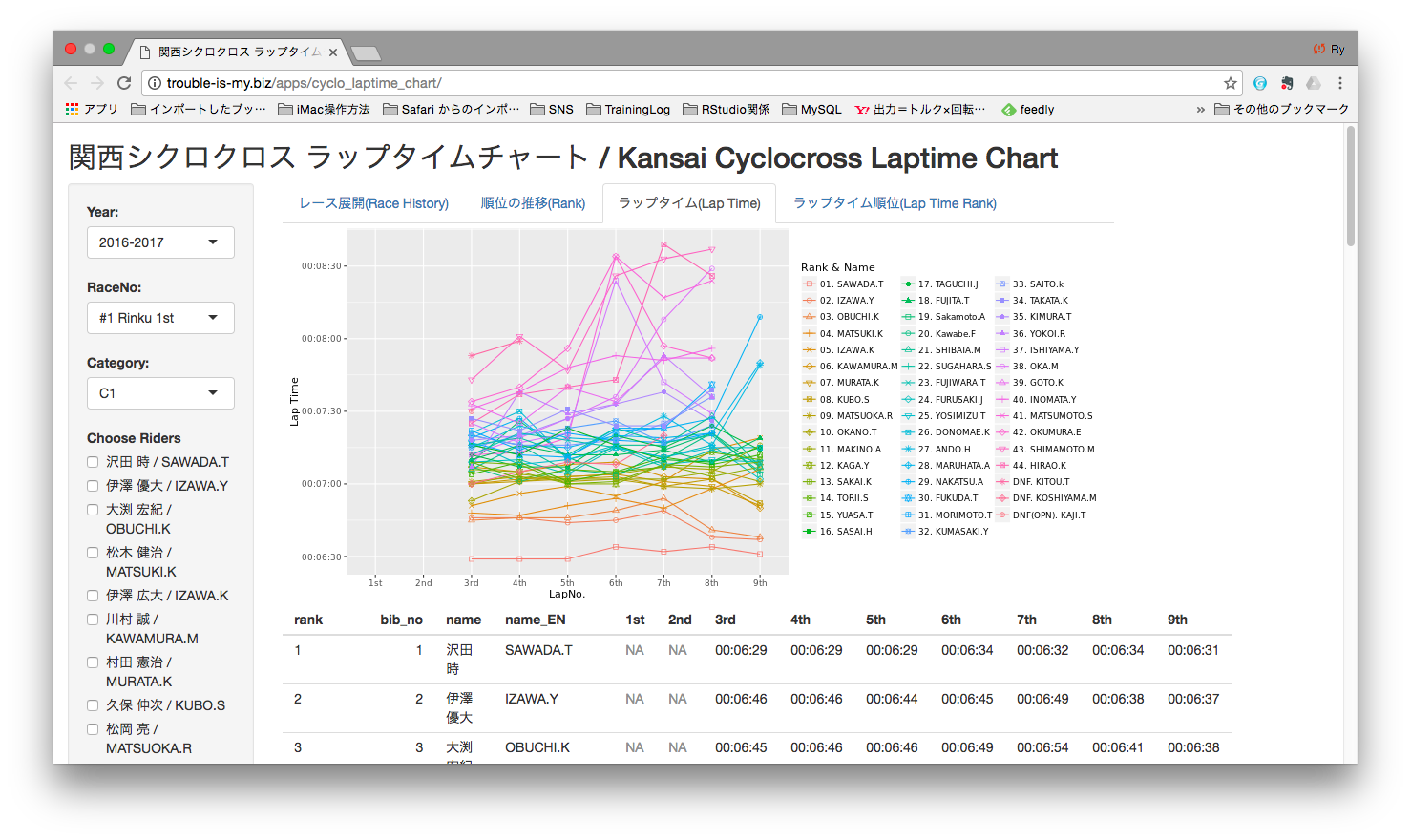 Laptime chart for cyclocross in this site is the web-based interactive chart. This chart will provide the detail race results of cyclocross, e.g. the race results, laptimes etc, and will help you enjoying the cyclocross race and also understanding what happened behind the race scenes.
